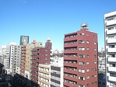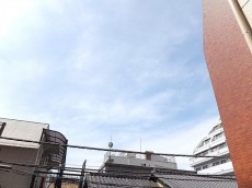 9階からの眺望です。周囲を見渡すと大きな建物がみえますが、道路はさんでの向こう側にある建物なので圧迫感は感じませんでした。清々しい青い空もこのようにみえましたよ。