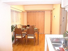 ダイニングキッチンは約6.2帖。北東向きのバルコニーに面しています。