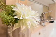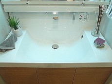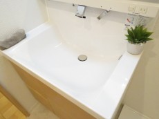 洗面台です。清潔感ある真っ白なゆとりある洗面台はとても使いやすそうです。