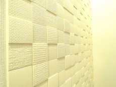 白基調の明るい玄関ホール。玄関扉の正面壁面には調湿・消臭等の効果がるエコカラットが使われています。窓が無く空気が滞りがちなところだけに快適な空間に保てるのはうれしいですね。