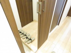 玄関の照明には人感センサーが付いているので、暗い中手探りでスイッチを探す必要はありません!いつでも明るい玄関が迎えてくれますよ。シューズボックスはトールタイプ。たっぷり収納できるので玄関まわりがすっきりと片付きます。