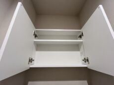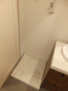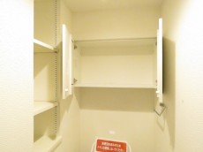 洗濯機置場横の壁面にも物置棚が設けられていました。