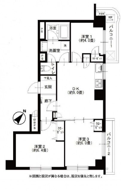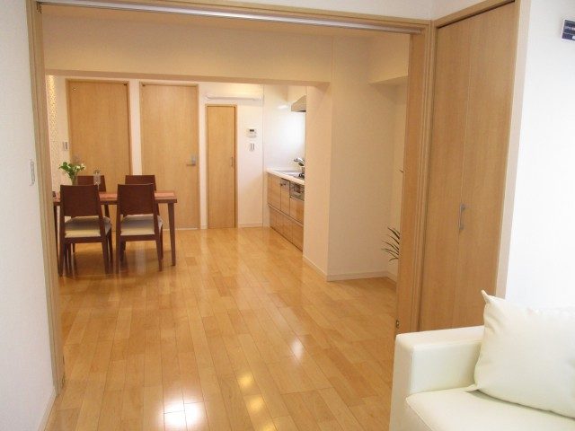 入口からバルコニーに向かってキッチン、ダイニング、リビングと並べるオーソドックスなタイプ。家具のレイアウトに悩むことはなさそうですね。