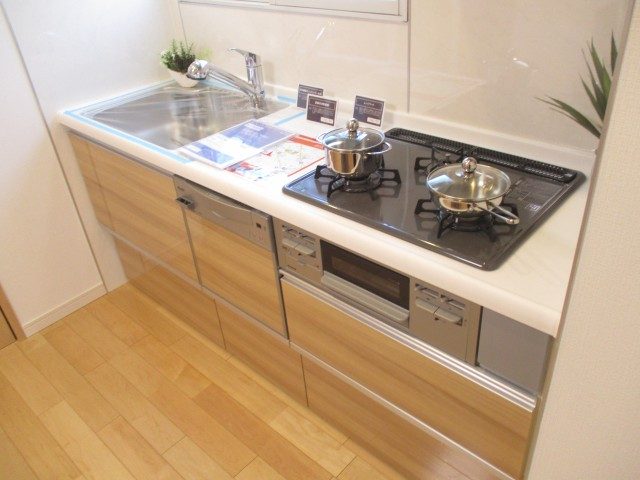 浄水機能付き水栓、食洗機、3口ガスコンロと設備も充実。設備が整っているとお料理も楽しくなりますね♪お部屋の雰囲気にマッチする木目柄もステキです。