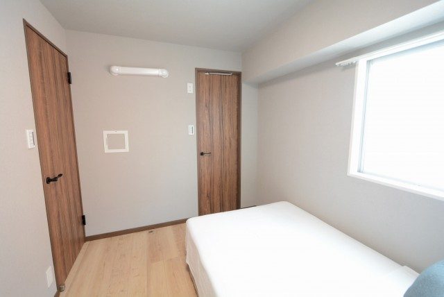 こちらは約5.5帖の洋室。南西向きバルコニーに面した大きな窓が付いたお部屋です。入口に引き戸を使っているので、扉の開け閉めに必要な無駄なデッドスペースもできません。