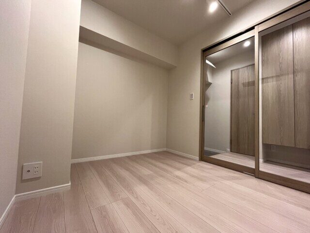 もう1部屋の洋室は約5.7帖。こちらもバルコニーに面しており陽当たりバッチリ。収納力のあるウォークインクローゼットが設けられており、居住スペースは有効的に使えるかと思います。