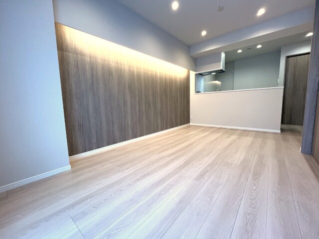 こちらは、約11.6帖のリビング・ダイニング・キッチン。木目を多用した落ち着いた雰囲気で、寛ぎの空間にぴったりのお部屋ですね。夜になれば間接照明がいい仕事をしてくれそうです♬