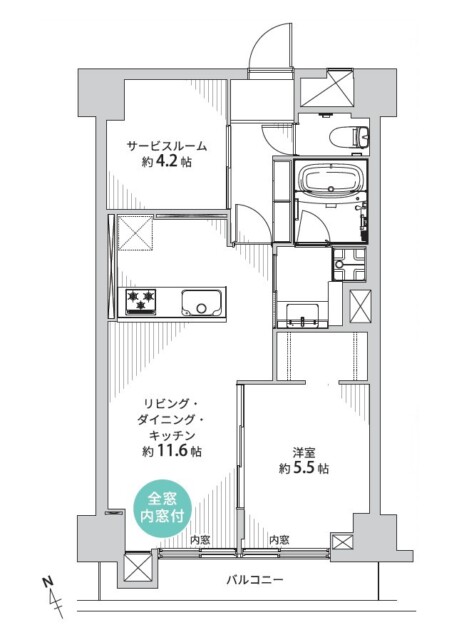 トイレの向かい側は約4.2帖のサービスルーム。収納はありません。