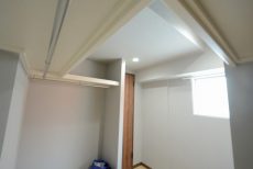 こちらは約4.2帖のサービスルームです。サービスルームとは、採光などの関係で法律上「洋室」と呼べないお部屋のこと。あくまでも法律上なので居室として使えることがほとんどです。ただ、、、今回のお部屋はガラス張りなので寝室にするのはちょっとためらわれますよね^^; 収納も丸見えなので気を使いそうですし、、、書斎や趣味の部屋などにするのが良さそうです。