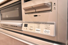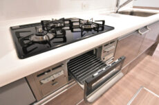 コンロは3口、グリル付。タイマーや簡単な温度設定が出来るようになっています。最近は便利になっているんですね。消し忘れも防げると有難いんですけど・・・あっ、私のことじゃありませんよ。一人暮らしの親のことです(笑)