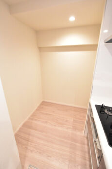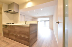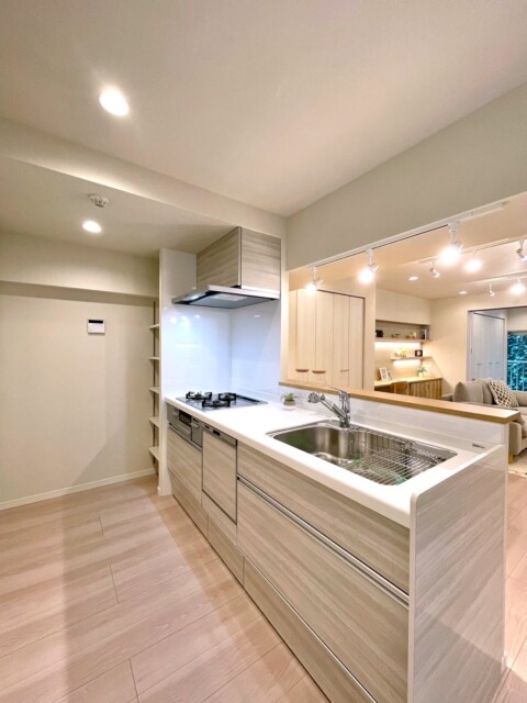 といっても半分はパネルに塞がれていて、フルオープンって訳ではありません。シンク前に立てばLDを見渡せ、コンロ前では油跳ねを気にせず鍋を振るえる、いいとこどりのキッチンと言えます。