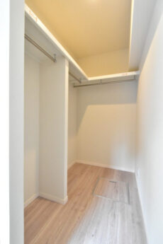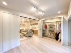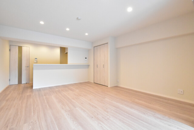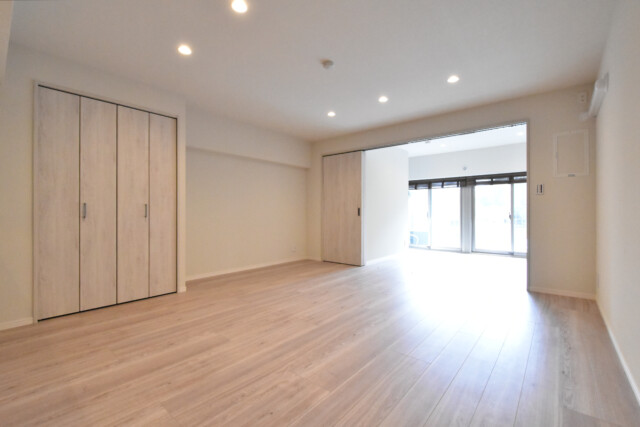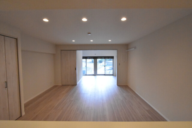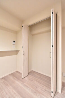 扉を閉めたLDKの様子。これでも十分広いですね。落ち着きのある、また違った良さがある気がします。LDKの収納は棚もハンガーポールも付いていないフリーに使えるタイプ。必要に応じてカスタマイズ出来きるのが便利です。