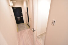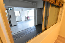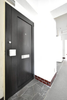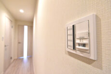 玄関周りもタイルとかヴィンテージ感があっていいですね。ドア横にはモニター付きインターホンが新たに設置され、室内に居ながらにして玄関前の様子を確認することが可能です。手が離せないときなどにとても助かりますよ。