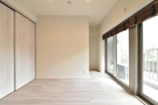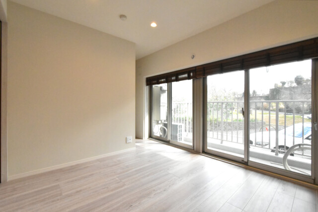 南東向きのバルコニーに面した、壁一面の大きな窓が特徴の明るいお部屋です。扉によるデッドスペースがないのでお部屋全体を無駄なく使うことが出来ますよ。