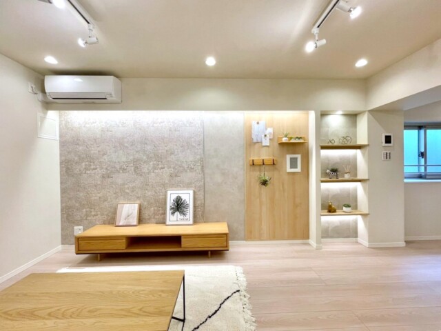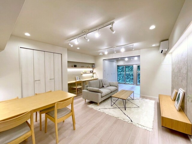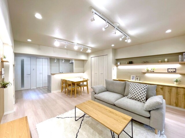 ■その他・・・フローリング貼替、壁・天井クロス張替、フロアタイル貼替、クッションフロア張替、建具・玄関収納交換、給湯器交換、エアコン(1基)、カラーTVモニター付インターフォン、新規照明器具取付、収納棚新設、スイッチ・コンセント交換、ハウスクリーニング
