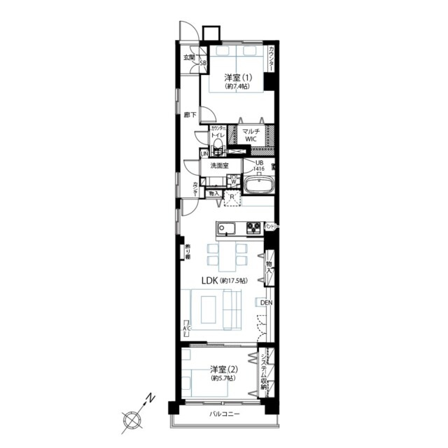 今回ご紹介するお部屋は2階、専有面積70.75㎡の2LDK。おひとり暮らしの方からスモールファミリーまで幅広くお使いいただけるお部屋です。