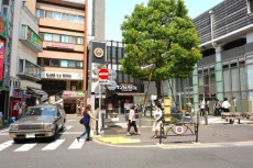 東横線の両隣の学芸大学・自由ヶ丘に比べると落ち着いた感じの都立大学ですが、駅前にスーパー、薬局、おなじみのカフェ、100円ショップ、銀行、交番などが並んだ商店街が形成されており、住み心地のよさそうな雰囲気。マンションまでは駅からほぼ1本道。駅前の道を右手に進み、途中で1本道を曲がれば到着です。
