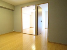 こちらは約6.6帖の洋室+約7.8帖のリビングダイニング。引き込み式の引き戸で仕切られているので開放すればつなげて使うことも可能です。LDには窓がありませんがこれなら外光も入りますね。