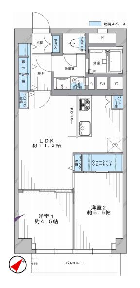 今回ご紹介するお部屋は5階、専有面積50.40㎡の2LDK。お一人暮らしやDINKSの方にお勧めのお部屋です。
