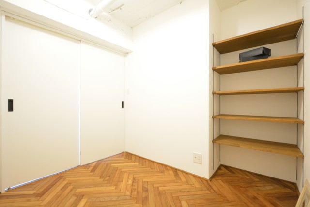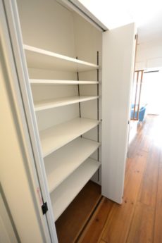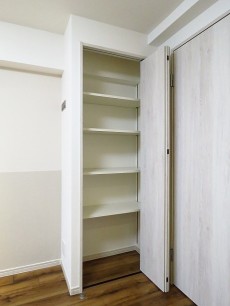 もう1部屋の洋室の扉の横にも可動棚付きの収納スペースが設けられていました。室内、ホントに収納が豊富です♥