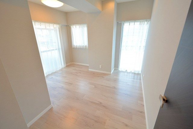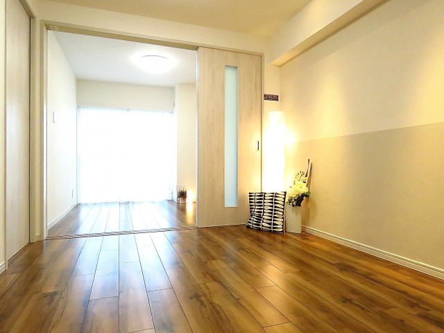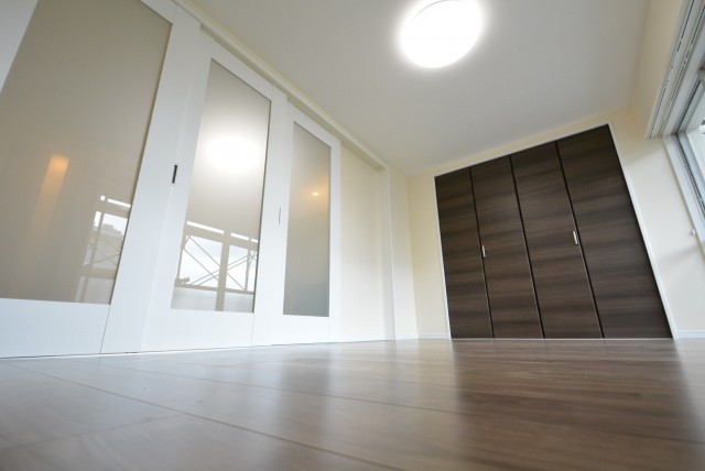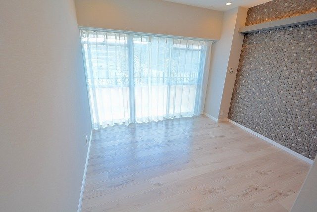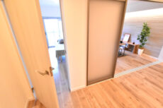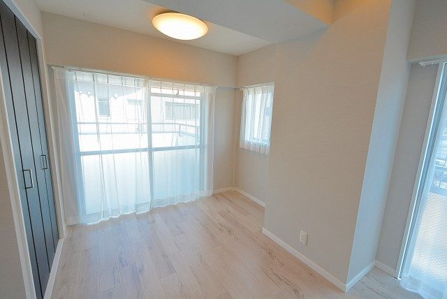 やはり南東向きバルコニーに面しています。隣の洋室との間には内窓が設置されていて風通しも良さそうですね。広くはありませんが柱などの出っ張りもなくスペースを有効に使えるお部屋です。