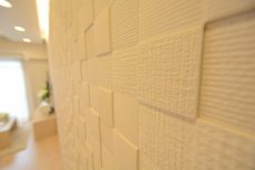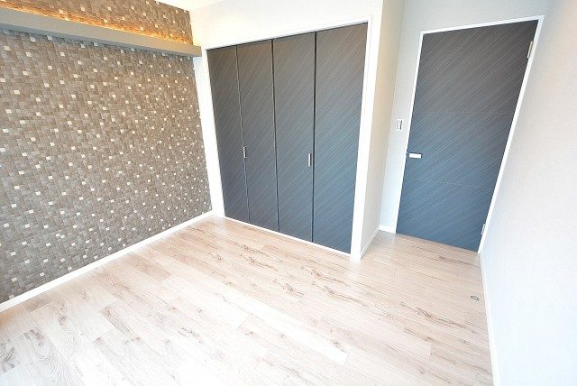 3枚の可動式扉側の洋室は約4.5帖。壁面の一部にはリビングと同じ柄のアクセントクロスが使用されています。窓は南東向き。