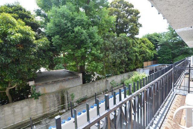 右側は建物になっていますが正面と左側には見晴らしのよい眺めが広がっています。大きな通りからは距離があってとても静かですよ。