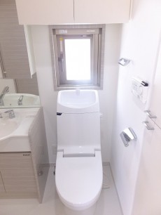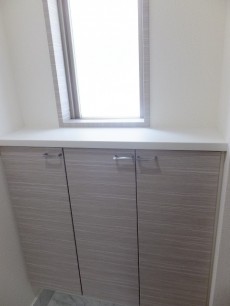 トイレには採光用&換気用の窓が付いています。細長い棚も付いているので、サニタリールーム内の様々なストックをこの棚に入れておくことができます(^_-)-☆