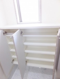玄関にはもう一つ棚があります。シューズボックスとしてもお使い頂けますし、うまく活用すれば、別の用途でもこの棚はお使い頂けそうですよ☆