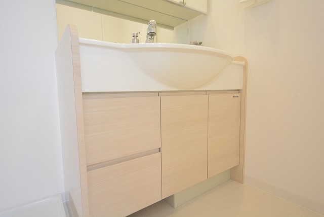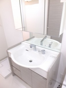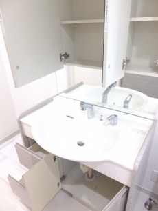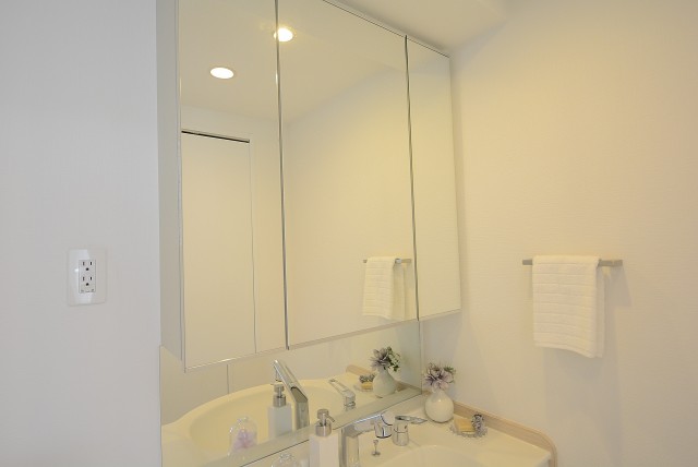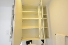 3面鏡の裏側も棚になっているので、いろいろと収納しておけますよっ!!