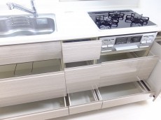 キッチンの一番奥の引き出しには、、、ライスストッカーがありました。これって便利なんですが、割と置き場所に困るんですよね・・・汗