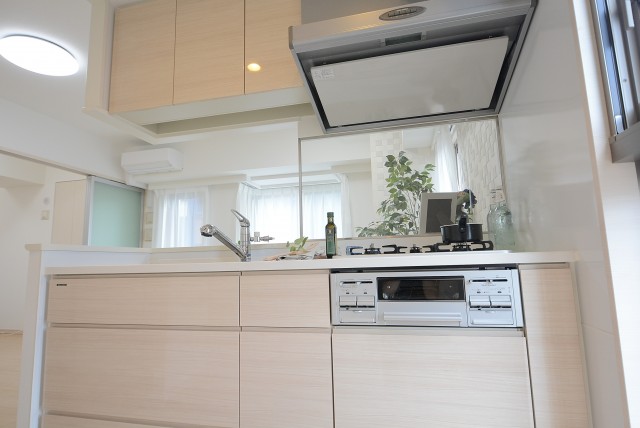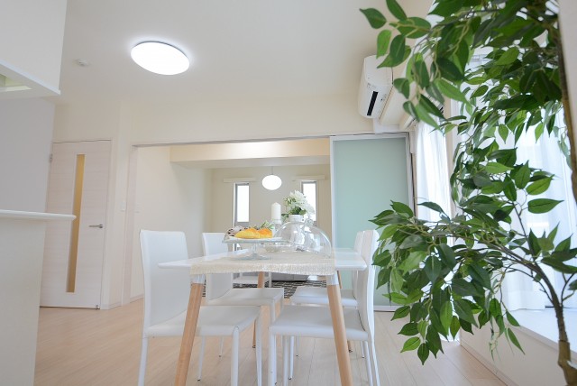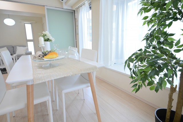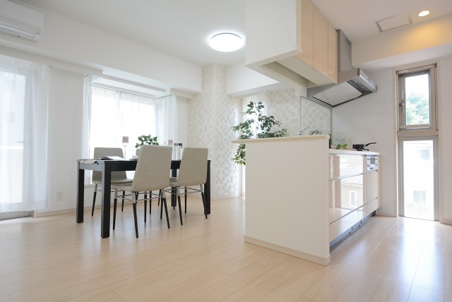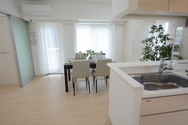 リビングダイニングキッチンは全部で約12帖。リビングダイニングは9.5帖あり、南東側・南西側が窓になっているので、いつでもとっても明るいですよ☆