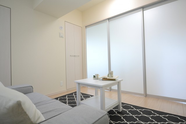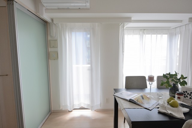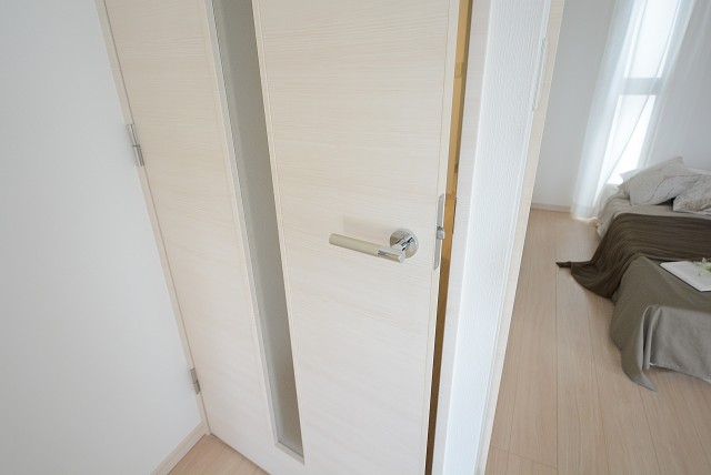 リビングから北東側を見ると、すりガラスの様な扉があります。