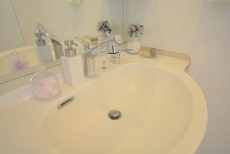 洗い場は広く、顔が洗いやすそうなお洒落な板を設置。