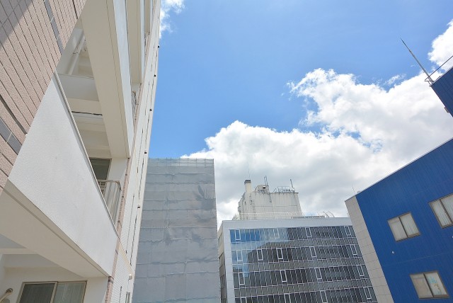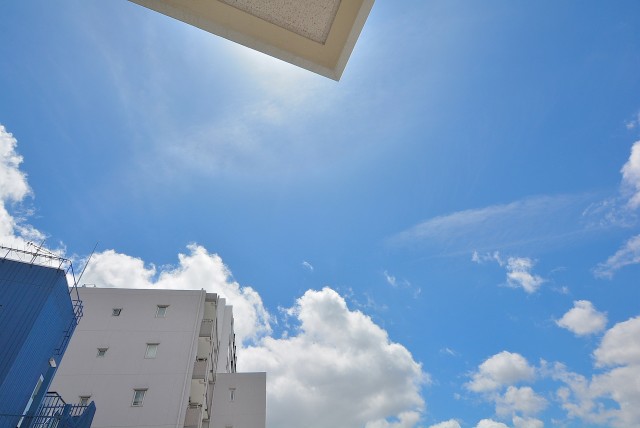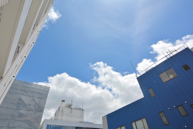さすが目黒だけあって、周囲もせの高いビルがたくさんあるので、抜けるような眺望は望めませんが、それでも見あげると東京の青空が広がっていました。