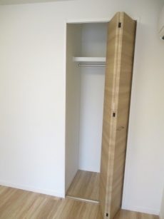 柱などの出っ張りがない綺麗な形なので家具のレイアウトもしやすく、無駄なくスペースを使えそうですね。入口が引き戸なので開け閉めのスペースを考慮する必要もありません。収納はウォークインクローゼット!!!ハンガーパイプだけでなく可動棚なども設置されバランスよく使える収納です。