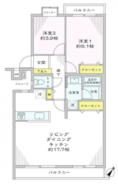 南東向き。この日は曇天でしたが晴れた日は陽当たりも期待できます。