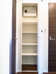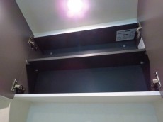 トイレットペーパーのストック、タオルなど水回りで使う物を仕舞って置くのにちょうどよさそうな位置です。