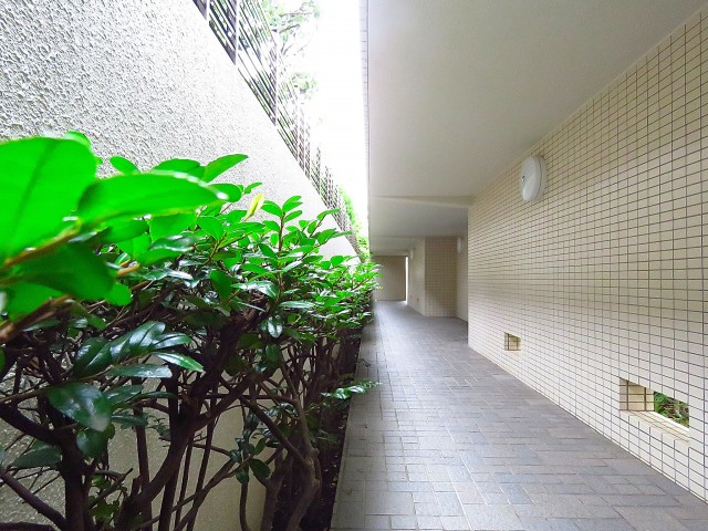 門扉の向こうはタイル敷きの長い通路になっており、お部屋毎に分かれて入口が数か所つくられています。巡回で管理が入っており、清掃もキレイにされています。