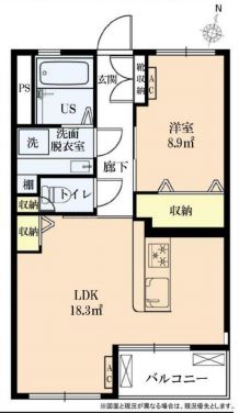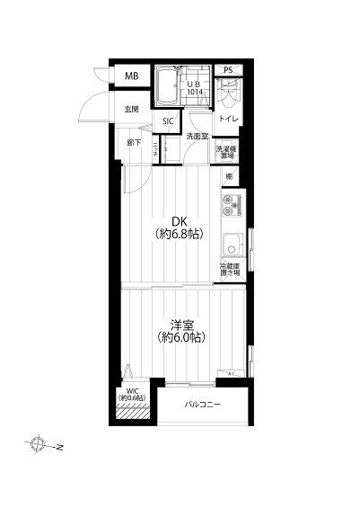 こちらのお部屋には収納力のある約1.1帖のウォークインクローゼットがついています。収納が大きいと生活スペースを有効的に利用できるのがうれしいですね。
