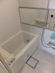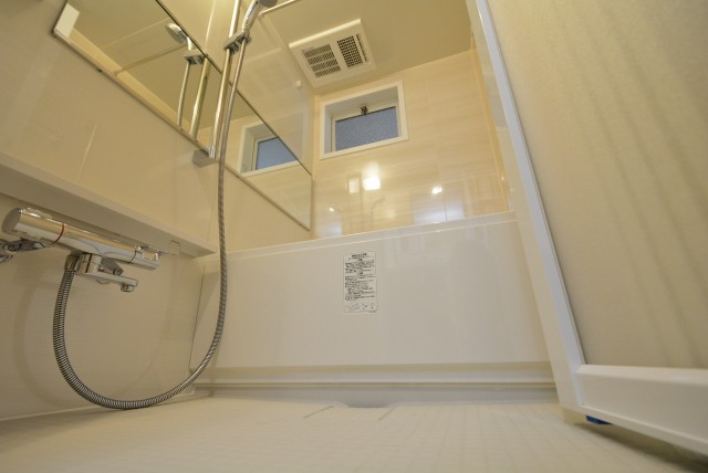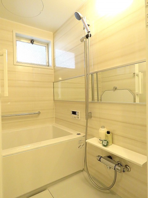バスルームは追い焚き機能付き。家族の帰宅時間がバラバラでも温かいお風呂につかれます。換気に便利な小窓もついています。