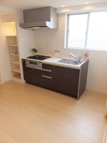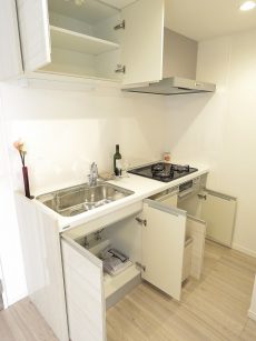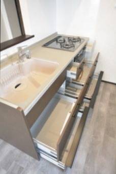 キッチンの上下、カウンターの下とキッチングッズの収納スペースは豊富!広々としたカウンターはお料理中の作業スペースとしても活躍してくれるハズ。手際よくお料理が作れそうです。