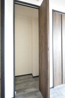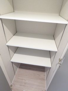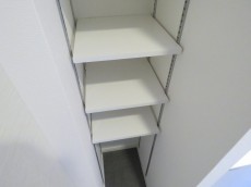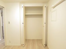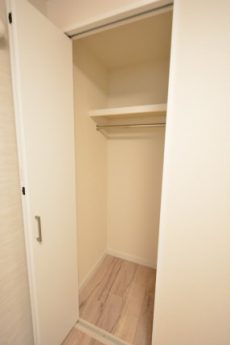 二番目の扉はクローゼット。幅はそれ程ないので床や棚を上手く使いましょう。