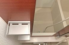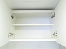 収納スペースも用意されています。フェイスタオル等の収納に利用できますね♪