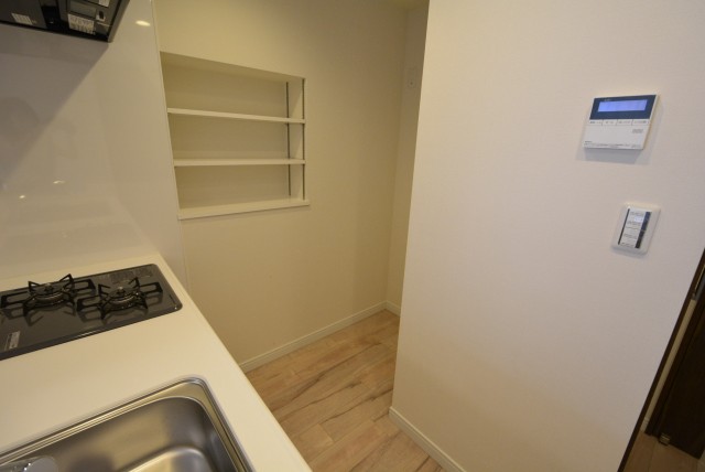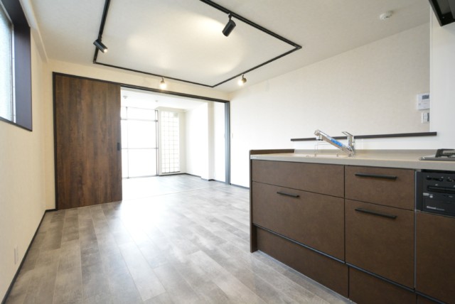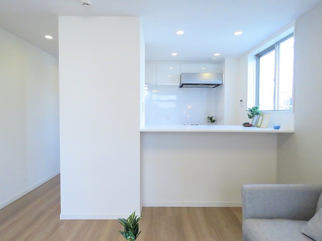 入って左側にはキッチンがありますが、養生されていて詳しくみる事が出来ませんでした。スミマセン^^;)