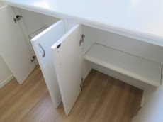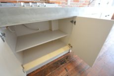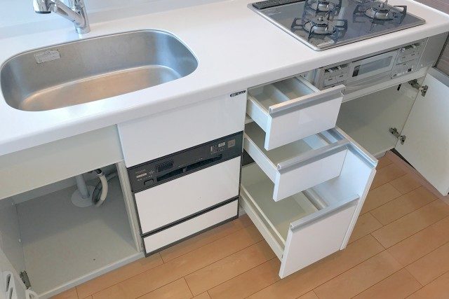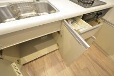 調理台下は扉タイプの収納になっていました。幅が広いので収納力抜群です。