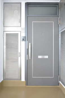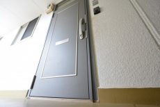 エレベーターを5階で降りて、外廊下を進むと玄関に到着です。