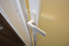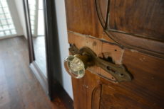 外れていたドアもちゃんと元通り。レトロなドアの裏は黄色に塗られていたんですね。