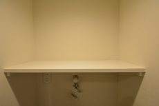 三番目は洗濯機スペース。棚も付いていてすぐ使える所に洗剤などを置いておけますよ。