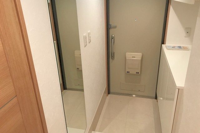 バスルームの扉横には、暖房や涼風などのボタンがあります。